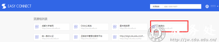 3.登录完成后,浏览器自动跳转到用户可访问“资源组列表”页面,单击“教务处”,如下图所示: