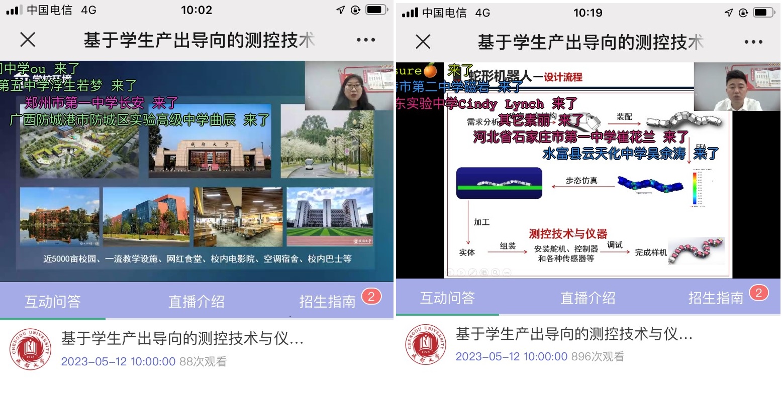 本次宣讲会从学校概况、学院发展、专业建设、学生双创等方面全方位宣传了我校测控技术与仪器专业学科特点、培养特色、就业前景,并得到了报考学子和家长们的热烈参与,整个直播过程中考生提问与专业老师解答互动积极,观看人数达到1432人次,此次宣讲会极大推广了测控技术与仪器专业的社会影响力。