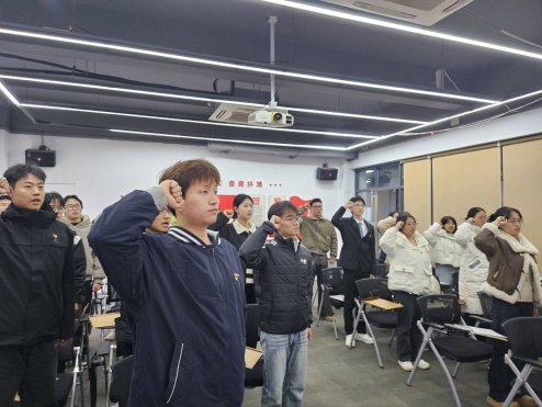在机械楼501室隆重举行新党员入党宣誓仪式。学生党建工作辅导员陈璐老师主持,学院党员工作站成员及28名新发展预备党员参加。