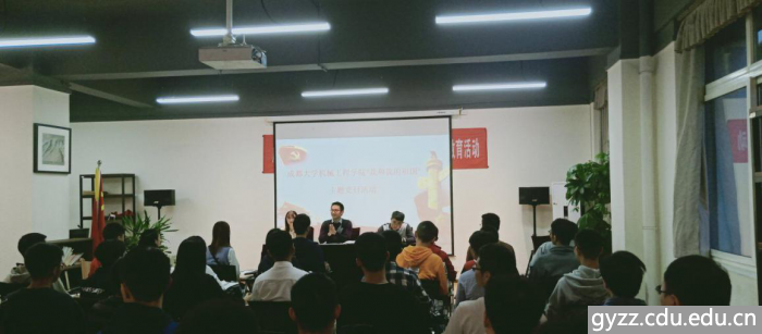 10月10日在党员活动室集中开展活动。活动由机电工程系学生党支部书记罗小麟主持,与会党员一同参与回顾了近代以来中华民族英勇奋斗,回顾了中国共产党成立以来艰苦卓绝的斗争以及新中国成立以来中华民族从站起来、富起来到强起来的伟大飞跃。