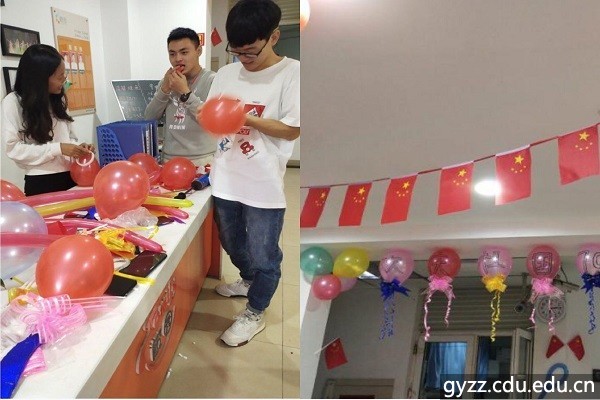 新中国七十华诞前夕,党支部组织学生党员布置宿舍大厅、制作宣传海报、齐唱《我和我的祖国》、制作VR等形式营造氛围表达对祖国70华诞的美好祝愿。