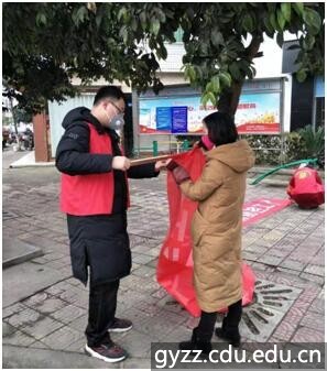 工作内容:主要负责和当地的党员志愿者一起到乡镇上做防疫宣传、拉横幅、劝散聚众人群、在镇上茶馆、麻将馆处查看是否有人聚集。