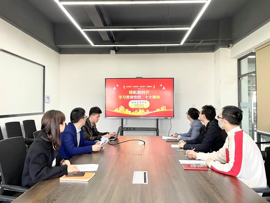 对外合作办公室全体人员在机械楼M502会议室召开专题会议,集体学习党的二十大精神。学院副院长任振兴出席了本次会议,会议由对外合作办公室主任柳炳琦主持。与会人员逐条学习了党的二十大报告内容,并着重解读了报告中关于教育强国、科技强国、人才强国的重要战略思想以及坚持为党育人、为国育才的教育导向,进一步明确了坚决贯彻科教兴国战略的目标与任务,为新时代教育、科技、人才工作指明了方向。对外合作办公室副主任卢超、张瑞以及跟岗锻炼教师张鹏、胡永旭等参加了此次会议,各位老师结合自身的工作职责表达了对党的二十大报告的深刻感想与认识,并对下一阶段的工作规划进行发言。