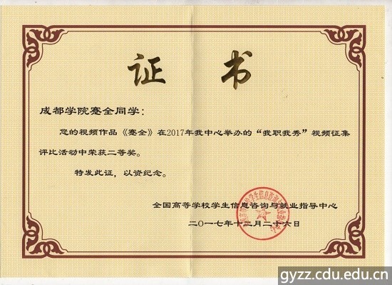 根据全国高等学校学生信息咨询与就业指导中心印发《关于颁发“我职我秀”视频征集评比活动获奖名单的通知》(教毕指[2017]106号文件),91视频