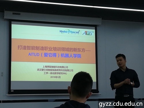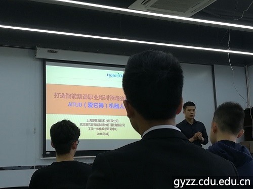 上海厚载智能科技有限公司,主要致力于从事智能科技、机器人科技、计算机软硬件、仪器仪表科技、教育科技领域内的技术开发、技术转让、技术咨询、技术服务,自动化设备、电子设备、机电设备、通信设备及相关产品、安防设备、仪器仪表、教学用品的销售。厚载公司,围绕职业院校学生普遍"不爱学、学不会"和工学一体化教学实施难的焦点性教学问题,公司提出了一种非常适合国情的行动导向的AITUD(爱它得)教学法和"七位一体"(包含工科专业课程建设的七个核心要素)的课程改革实施模式,现已在全国拥有近百家用户,受到用户、行业专家的高度认同。 在本次宣讲会中,上海厚载智能科技有限公司的宣讲人,通过PPT,演讲,观看公司手册等方式对公司的规章制度、福利待遇、91视频、以及公司发展历程和本次招生的计划和要求的作出了详细介绍。在宣讲人作出自己的阐述后,同学们向他们提出了自己在专业和职业以及未来工作生活中所感兴趣的问题,老师也为同学们耐心解惑。并且通过自身经验对同学们的发展提出了建设习惯的意见。