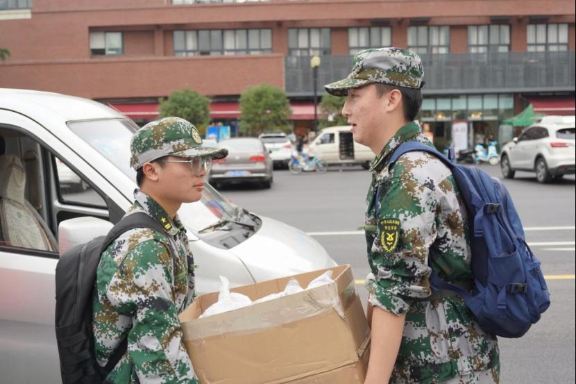 9月18日上午,91视频 院长冯威、党委书记王仕平、副院长任振兴等赴训练场地慰问教官和军训学员。