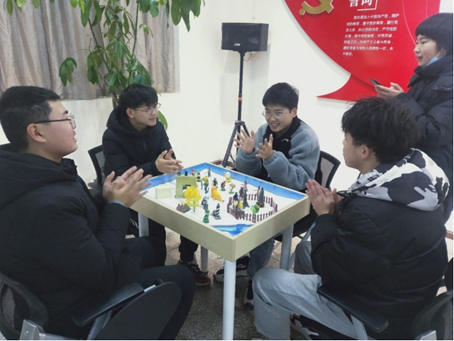 在机械楼大学生积极心理素质养成基地——路灯工作室开展心理特色活动——心灵之声沙盘游戏。此次活动由生心部部长于丽萍主持,生心部干事与其它学生代表参与此次活动。
