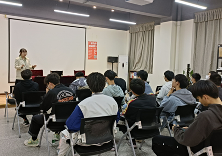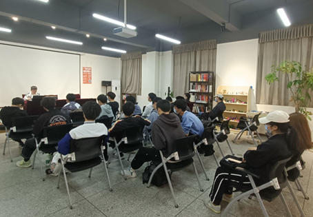 于机械楼M308教室举办主题为“一研为定 语你同行”的考研座谈活动。活动由辅导员陈美玲老师主持,周悦、张浩、唐华林三位“成功上岸”的2018级学生作为活动嘉宾,学院部分大三学生参加活动。
