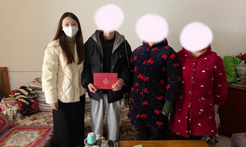 1月7日上午,机械学院辅导员陈璐到达金堂县淮口镇一所安置房小区,走访21级材料专业雷同学,并与学生妈妈、奶奶交流学生在校学习生活及家庭情况。该生父亲常年在外务工很少回家,母亲有智力障碍,因为家中没有网络,平时主要居住在表姐家中便于上网课。奶奶说,雷同学从小学习自觉性高,每次完成作业后才下楼玩一会儿,从未让家人操心管教。