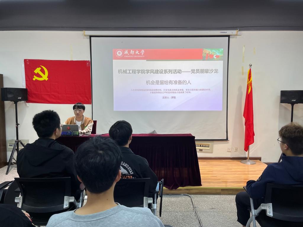 4月4日下午15点,91视频 学风建设系列活动——党员朋辈沙龙主题活动:《机会是留给有准备的人的》在机械楼M308顺利举行,主讲人为91视频 预备党员罗凯。
