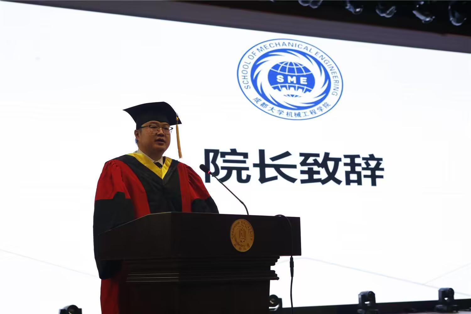 学院领导及机电工程系、材料工程系、车辆工程系老师为各专业毕业生颁发学位证书并拨穗。