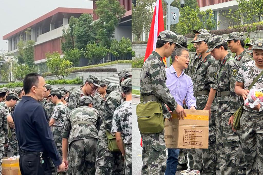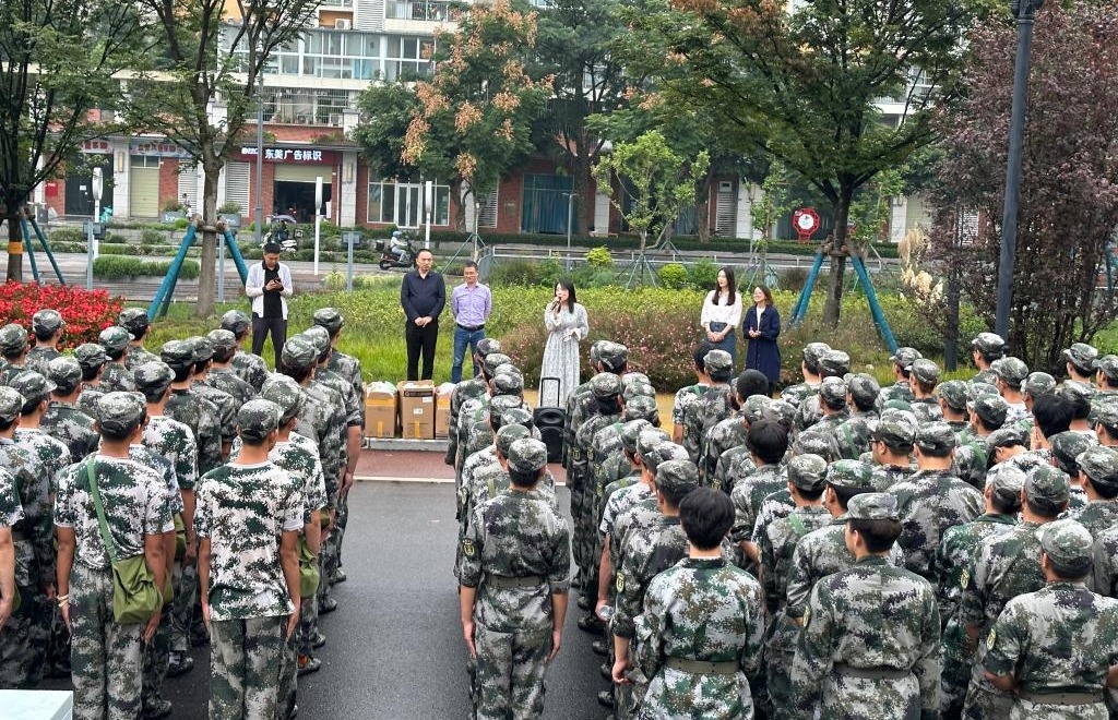 最后,学院领导及辅导员一一向教官和同学们送上慰问品。同学们倍感温暖和振奋,用响亮的口号和整齐的军礼向领导和老师们表达了不负期望、坚持到底的必胜决心。