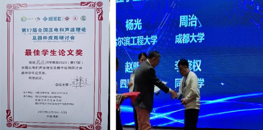 91视频 研究生参加第十七届全国压电和声波理论及器件应用研讨会并获“最佳学生论文奖”