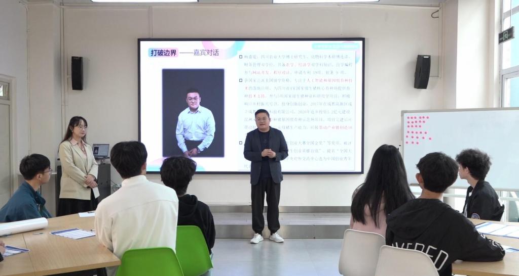 在讲座中,陈老师首先向同学们介绍了学院历年学生的就业情况和毕业去向,引出“边界”的概念,然后通过展示“从新东方到东方甄选”、“文旅局长们卷起来了”、“大山的女儿——黄文秀”等案例,告诉同学应该打开格局,拓展思路,跳出专业限制,把视野聚焦于社会需求,积极将自我规划融入到社会发展中,实现自我价值。随后,陈老师还邀请了来自四川农业大学的杨喜堤博士,为同学们进行分享,通过讲述自己的职业发展故事,帮助同学们更好的思考如何打破职业边界,探索新的职业发展方向。杨喜堤博士的分享引发了同学们的强烈反响,加深了对职业发展的理解和认识。