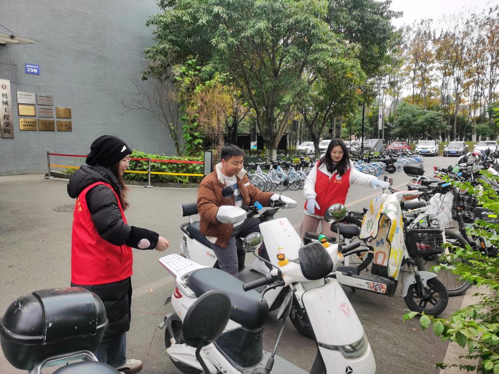 学生党支部开展冬日温馨值守行动,在学院大门处、三楼分图书馆进行定点值班,引导学生规范停车、有序使用分图书馆座位。