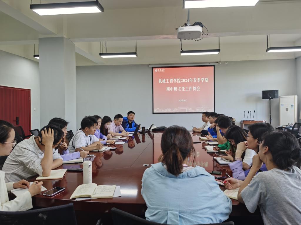 在机械楼M301会议室召开2024年上学年期中班主任工作例会。学院党委书记王仕平、党委副书记陈倩龄、学工办主任陈康、全体辅导员和全院班主任参加了此次会议。
