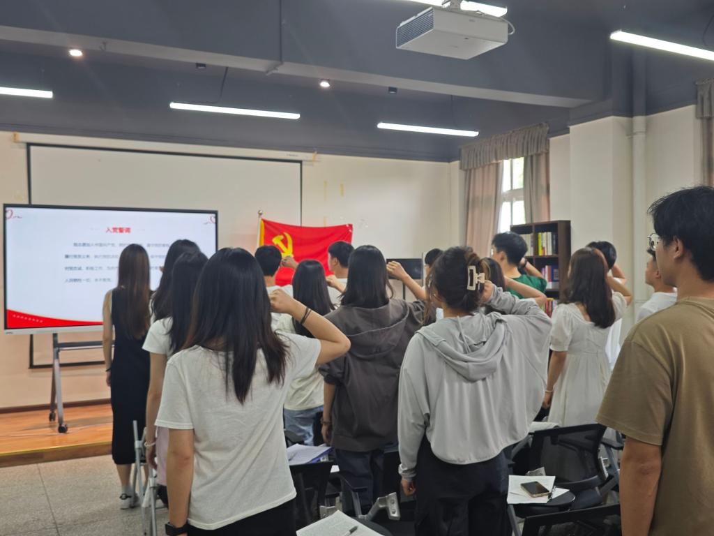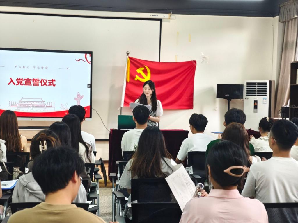 2023-2024学年第二学期新发展党员名单。新党员在党员代表孙思滔的带领下,面向党旗,举起右拳,庄严宣誓:“我志愿加入中国共产党,拥护党的纲领,遵守党的章程……。”铿锵有力的宣誓不仅是新党员在入党时对党和人民作出的庄严承诺,更是要求新党员在今后要时刻以党员的先进性鞭策自己,进一步坚定理想信念,始终不渝为实现共产主义而奋斗。