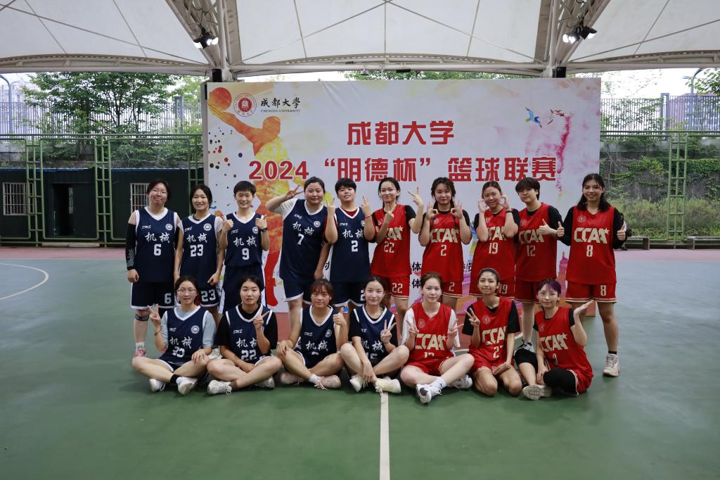 女篮也在“明德杯”篮球比赛中取得优异成绩。最后,校体委为获奖队伍颁发证书、奖牌和奖杯,双方队员进行合影留念。