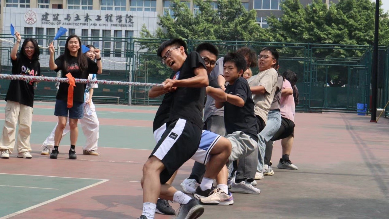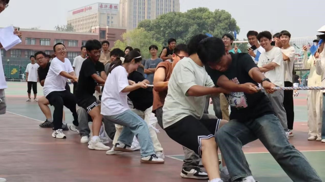 在一食堂篮球场举办了第二届“机械杯”拔河比赛。此次赛事不仅吸引了众多新生的广泛关注和热情参与,也成为金秋校园内一道亮丽的风景线。