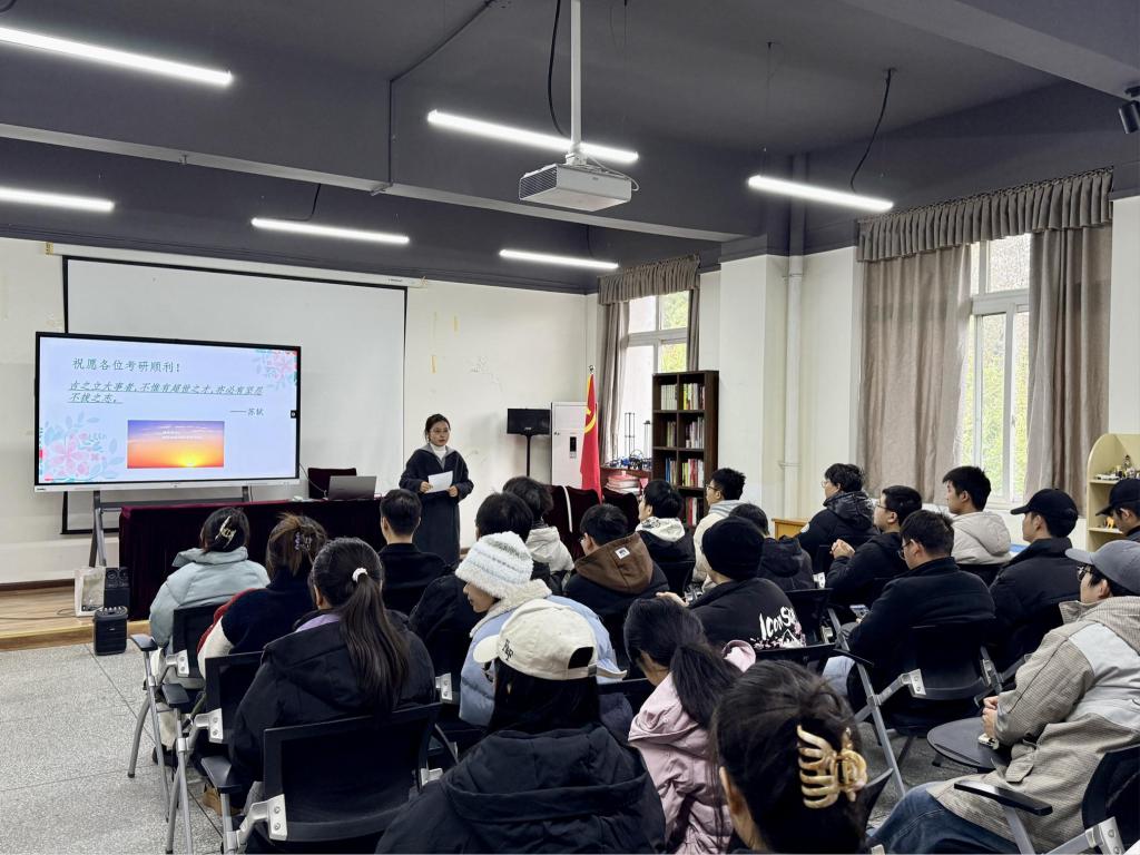 随后,学院研究生一年级的邓婷丹向同学们分享了自己的考研经验,从个人经历出发,讲述了如何克服备考过程中的困难和挑战,以及如何有效利用时间、调整心态、保持健康的生活习惯等实用建议。这些来自“过来人”的经验分享,让在场的考研学子感到受益匪浅,也为他们的备考之路提供了参考。