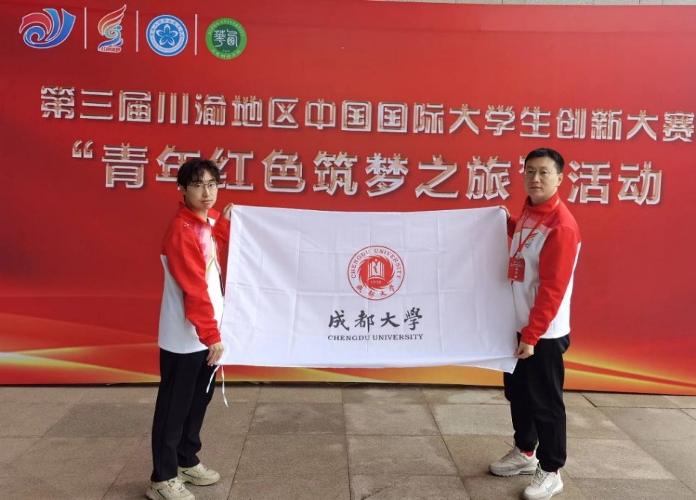 教师赵虔和学生晏德兵作为今年四川省创新大赛“青红赛道”金奖项目获得者参加现场活动。