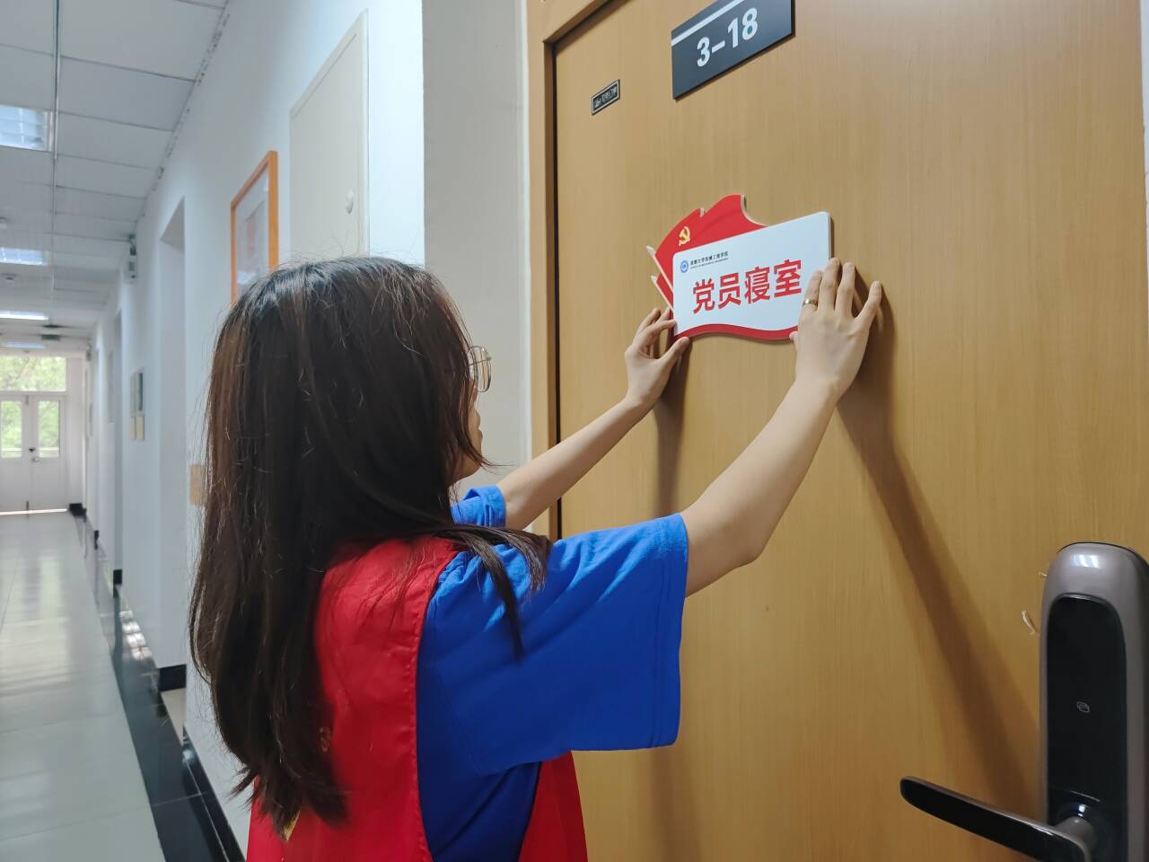 学生党员寝室不仅是一份荣誉,更是一份使命,学生党员要在日常生活中以身作则、率先垂范,激励更多同学向党组织靠拢、向榜样看齐。截至目前,学院已累计完成100余间学生党员寝室挂牌,为探索学生思想政治教育融入学生日常生活的创新途径提供有力支撑,为积极构建“一站式”学生社区新时代高校党建纵深发展新阵地。