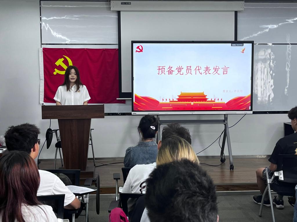 预备党员代表许议匀同志在发言中表示,入党不仅是荣誉,更是责任。她结合自身经历,分享了从递交入党申请书到成为预备党员的心路历程,并代表全体新党员作出承诺:一要做理论清醒的学习者,将党的创新理论与专业知识深度融合;二要做实践过硬的奋斗者,在科技创新、学科竞赛中锤炼本领;三要做服务同学的贴心人,以实际行动传递党的温暖;四要做纪律严明的标杆者,从遵守课堂纪律、爱护实验器材等小事做起,坚决抵制学术不端行为。