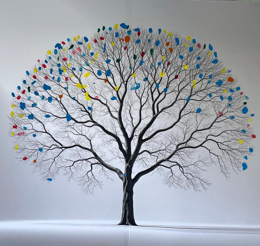 为给25级新生的报到之旅留下独家难忘回忆,今年的迎新活动特意精心设计了“新心相印”互动区,用充满仪式感的方式迎接每一位新成员。在学院迎新点,一副1.5米高“成长树” 格外吸睛 —— 树干线条简洁有力,延伸出的枝丫错落有致,仿佛正等待着新生们用专属印记赋予它生机。每一位完成报到手续的新同学,都会在色彩丰富的印泥盘里挑选心仪的颜色,随后郑重地将手印按在树的枝丫上。随着报到进程推进,原本空荡的枝丫渐渐被一枚枚色彩各异的手印填满,从稀疏到繁密,从零散到规整,最终汇聚成一颗枝繁叶茂、充满生命力的 “迎新树”。这不仅是新生们留下的专属纪念,更象征着25级新同学从此在91视频