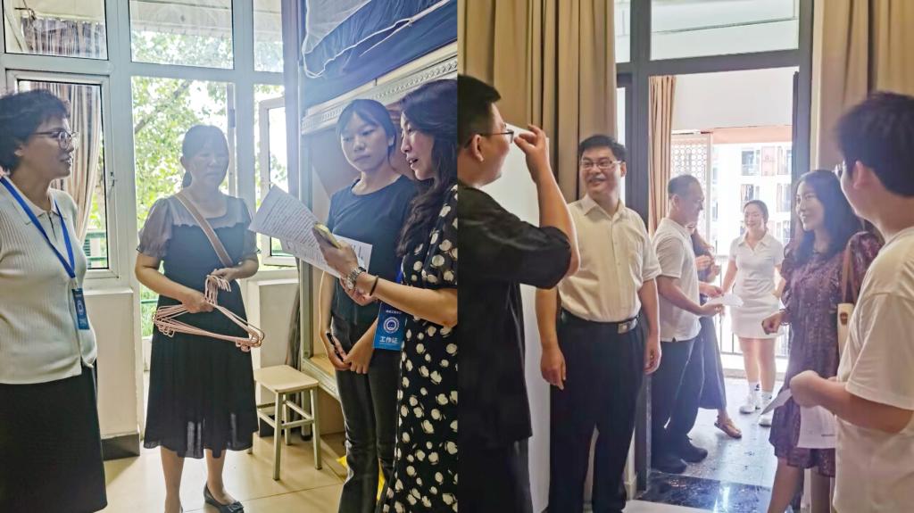 学院领导带领新生班主任走进寝室看望慰问新生和家长,详细询问新生报到过程是否顺利,以及对寝室住宿环境、生活设施是否满意,目前有没有遇到一些问题和困难。领导们还特意叮嘱新生,尽快适应新环境,遇到生活上的困难或学习上的困惑,要第一时间联系班主任或宿管老师,学院会尽全力为大家解决问题;同时也向家长们表示,学院会像家人一样关心照顾每一位新生,让家长们放心。