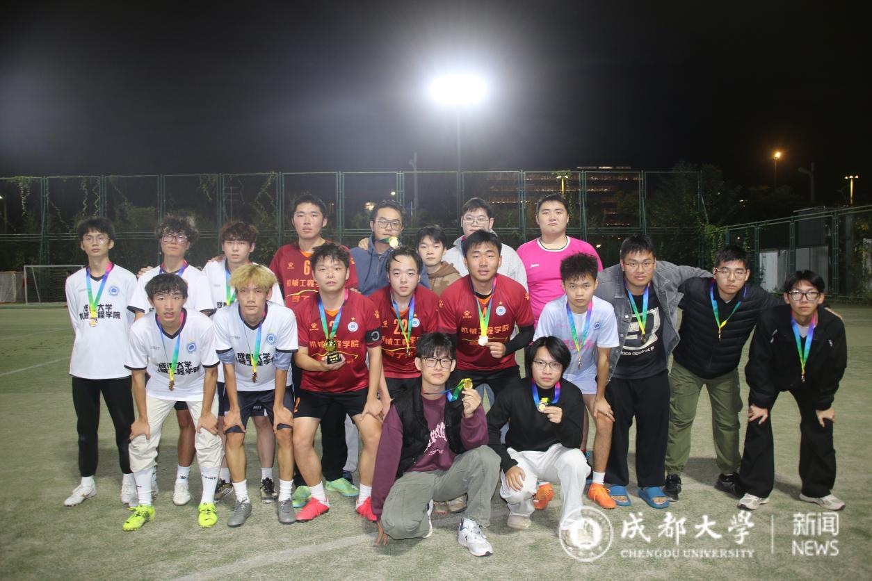赛事启动以来,全院学子积极响应。从小组赛的激烈角逐到淘汰赛的强强对决,各参赛队伍充分展现了机械学子顽强拼搏、永不言弃的精神风貌。赛场上,球员们默契配合、攻防有序,精准的传球、凌厉的突破、精彩的射门与奋不顾身的扑救轮番上演,每一个瞬间都点燃了现场观众的热情。加油声、欢呼声此起彼伏,响彻赛场。经过多轮激烈比拼,最终22级机设代表队凭借出色的战术配合与稳定的发挥摘得桂冠,24、25级材工代表队与23、25级车辆代表队分获亚军与季军。赛事还评选出“最佳射手”“最佳球员”等多个单项奖项。