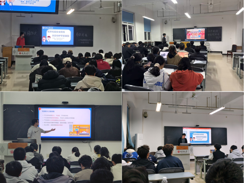 主题班会全覆盖,安全意识入人心。11月9日,以全国消防宣传日为契机,学院各班级积极组织召开了“消防安全主题班会”。各班班委精心准备,通过播放警示教育片、讲解消防知识、分析校园火灾案例等形式,向同学们普及了宿舍安全用电、火灾报警、火场逃生等基本常识和技能。班会气氛热烈,同学们积极参与讨论,深刻认识到“隐患险于明火,防范胜于救灾”的重要性,实现消防安全知识学习全覆盖,为构建班级安全共同体奠定了坚实基础。