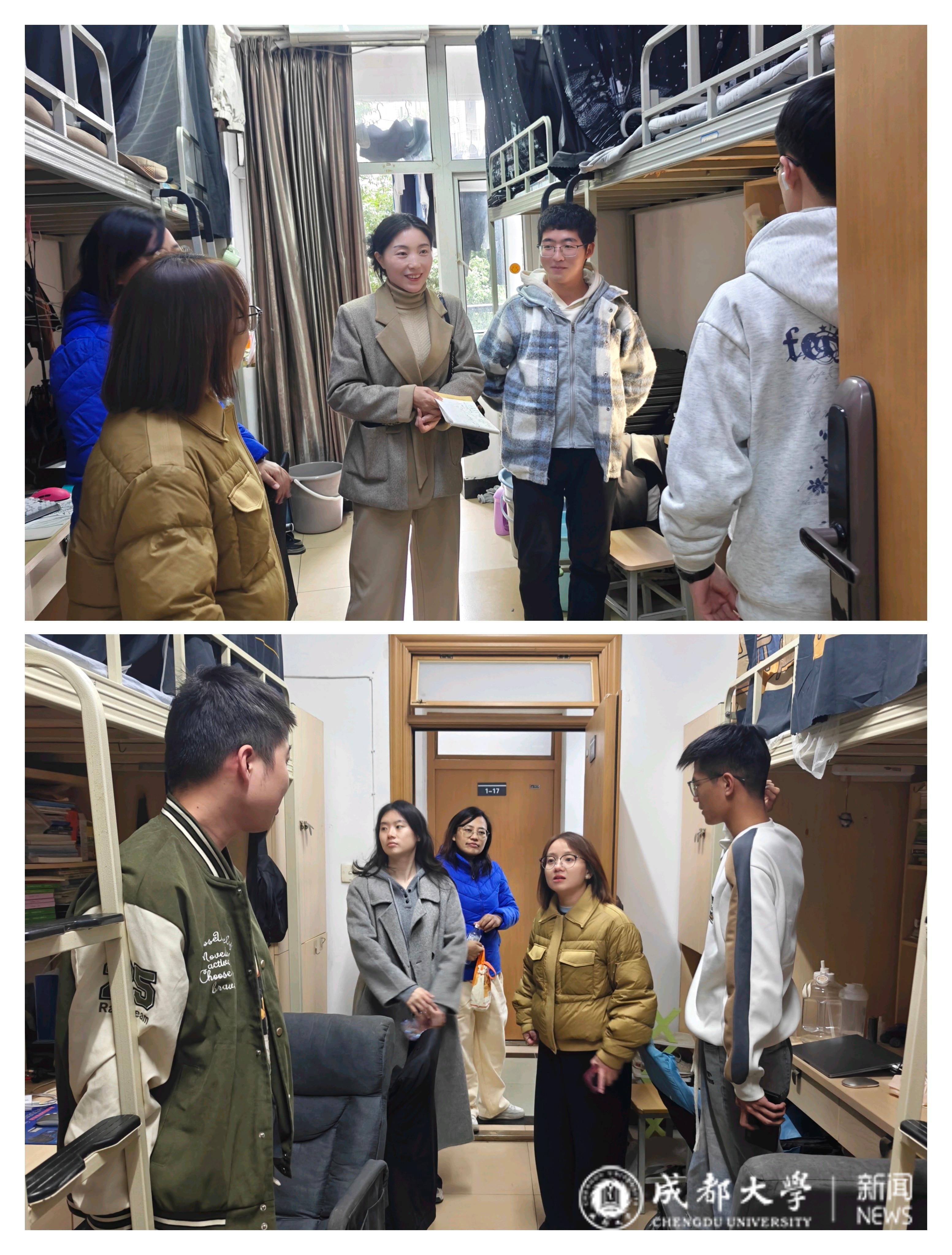 关怀入微,叮嘱在心。在严格排查安全隐患的同时,领导和老师们也亲切慰问了各位同学,关心地询问大家的学业进展和日常生活,并叮嘱大家:“安全是学习和生活的前提保障,要为营造一个安全、整洁的宿舍环境担起自己的应有责任。”
