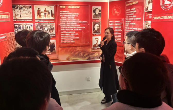 全体同志在讲解员的带领下依次走进展厅,仔细聆听江竹筠等革命先烈的生平事迹和英勇斗争故事。走进展厅,一幅幅珍贵历史照片、一件件革命文物、一段段感人肺腑的文字,将大家带回到烽火连天的革命岁月。讲解员从川渝地下党斗争环境、江姐等烈士坚贞不屈的斗争历程,到红岩精神的丰富内涵,作了系统而生动的讲解。师生党员不时驻足凝视、轻声交流,在一幕幕场景中追忆先烈抛头颅、洒热血的伟大牺牲,真切感受信仰的力量、理想的光芒。