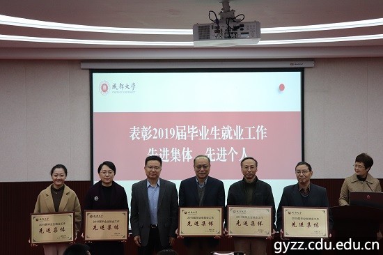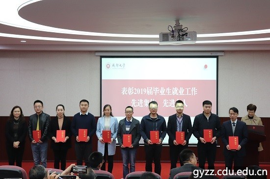 2019届毕业生就业工作总结表彰会暨2020届毕业生就业工作推进会在一教演播厅举行。校长王清远、副校长彭晓琳出席会议,院领导李俭、王仕平和王建武,全体辅导员、部分班主任参加大会。