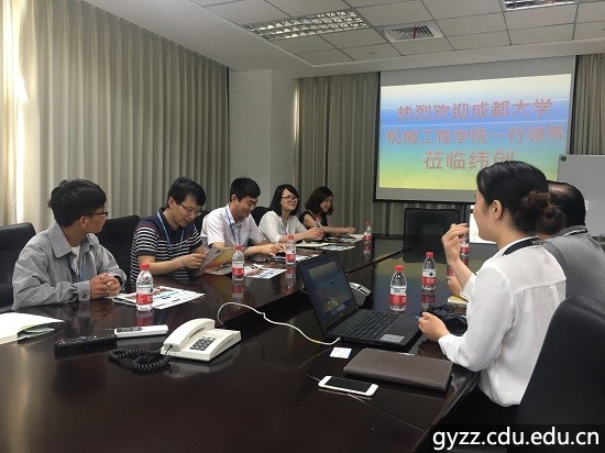 王建武书记、陈康老师、测控技术与仪器专业张涛和王琦等学生代表走访纬创资通(成都)有限公司,看望我校实习生,并就企业与高校的人才培养模式进行探讨。