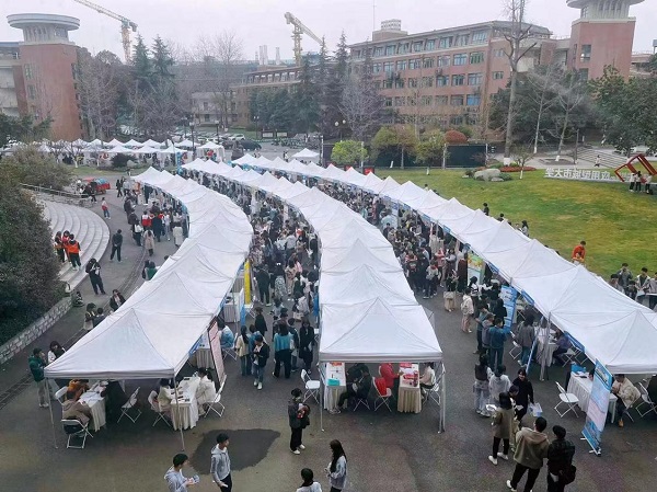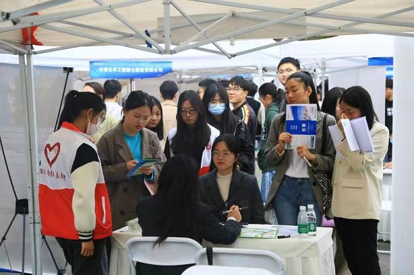 此次双选会活动有中国化学工程第七建设有限公司、中铁二十五局集团有限公司、潮州三环(集团)股份有限公司、华西能源工业股份有限公司等85家公司到场,招聘公司现场收集简历1518份,现场面试889人次,意愿签约197人。