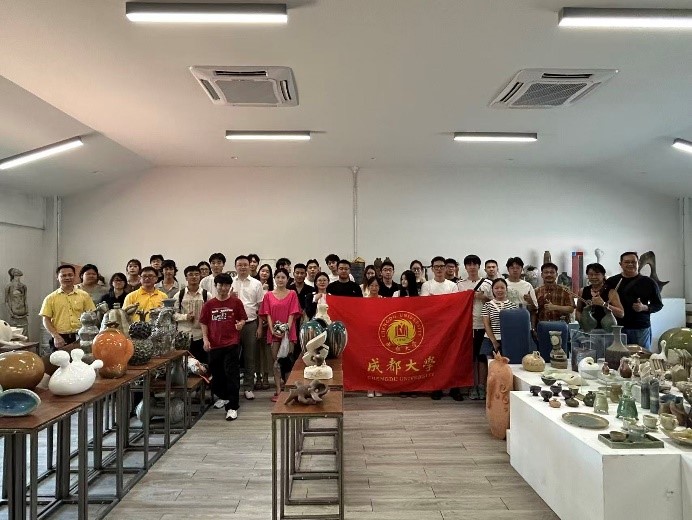 项目开展期间,泰国艺术大学为交流团学生们准备了丰富的工程技术课程与文化交流活动,其中包括陶艺工坊、泰语课堂、3D打印、艺术手绘等。在泰国艺术大学雕塑学院的陶艺美术馆中,同学们学习了泰国陶艺的发展并进行了陶器制作的相关课程。在泰语课堂学习中,同学们学习了日常交流使用广泛的泰语表达,感受了语言文化的交流。在3D打印实验室里,通过泰方教授的悉心指导,同学们通过软件编程完成了CDU工艺牌的打印。生动有趣的课程和细致的讲解拓展了同学们的眼界,增长了知识,感受到了来自泰国的文化多样性。