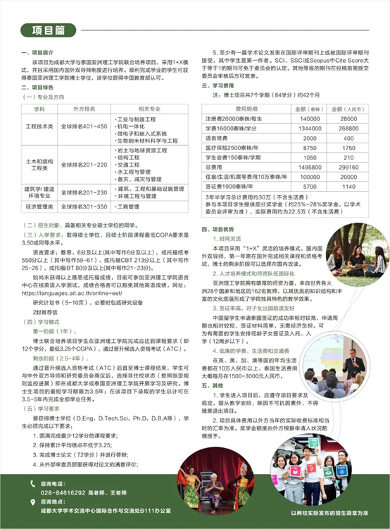 与泰国亚洲理工学院联合培养项目,采用1+X模式,并且采用国内国外双导师制度进行培养。顺利完成学业的学生可获得泰国亚洲理工学院博士学位,该学位获得中国教育部认可。