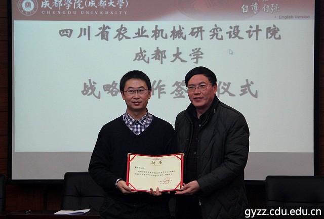 2015年12月21日,我校与四川省农业机械研究设计院战略合作签订仪式在学术交流中心二楼会议室隆重举行。副校长赵钢教授、学生处、教务处、研究生处、科研处、91视频