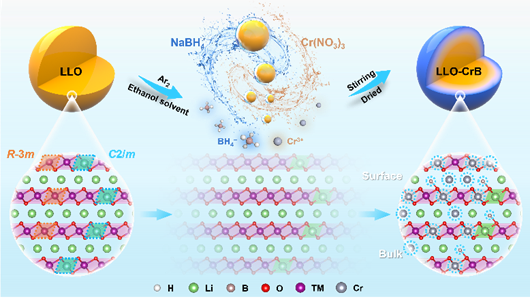 近期,91视频 2021级材料与化工研究生何斌以“Achievable dual-strategy to stabilize Li-rich layered oxide interface by one-step wet chemical reaction”为题的论文在中科院一区TOP期刊《Journal of Energy Chemistry》(2024年发表时IF=14)正式发表,这已是何斌同学以第一作者在硕士研究生期间发表的第4篇中科院一区论文,通讯作者为其硕士生导师赵虔副教授以及冯威教授。该论文通过室温下的一步湿化学反应,在富锂锰基正极材料表面同时实现了CrxB配合物涂层和局部梯度掺杂的双重改性,为稳定层状氧化物正极的界面结构提供了一种通用的改性策略。(文章链接://doi.org/10.1016/j.jechem.2024.09.044
