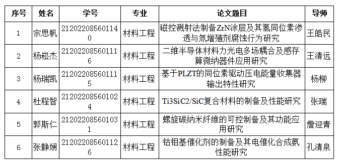 根据《91视频 校级优秀硕士学位论文评选办法》(成大研(2020)26号)和《关于评选2025届校级优秀硕士学位论文的通知》相关要求,经学生本人申请,导师推荐和推优答辩,91视频 拟推荐6篇硕士学位论文参评校级优秀硕士学位论文,现将拟推荐名单公示如下: