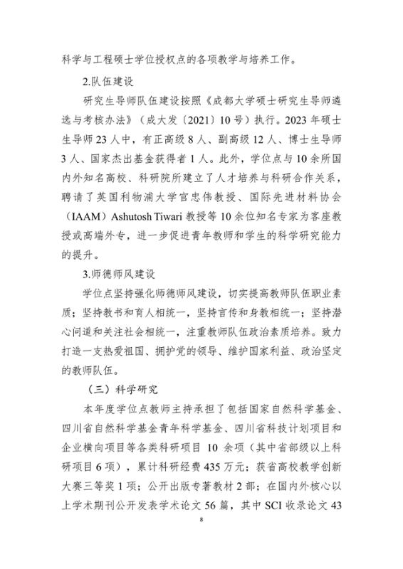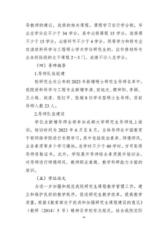 2023年材料科学与工程学术硕士学位点建设年度报告