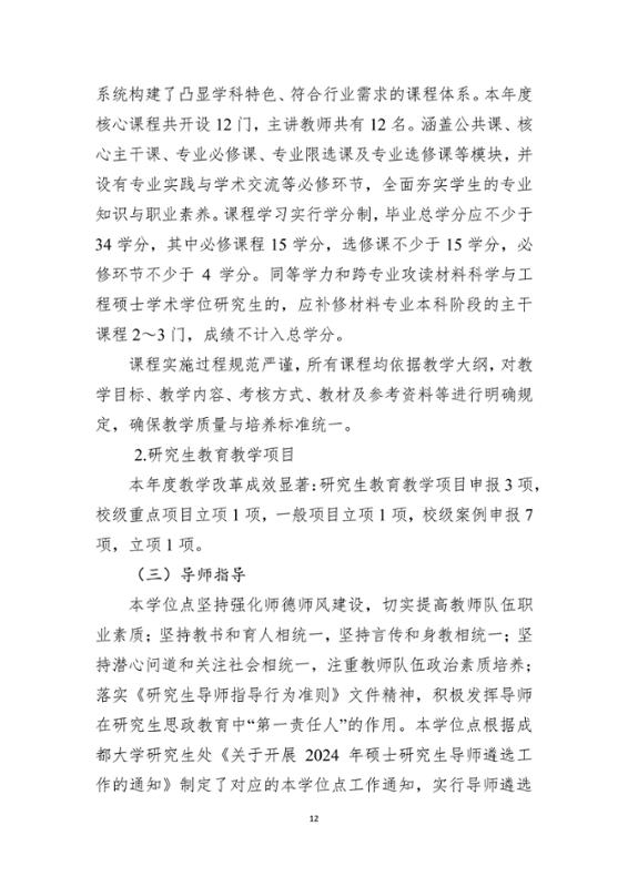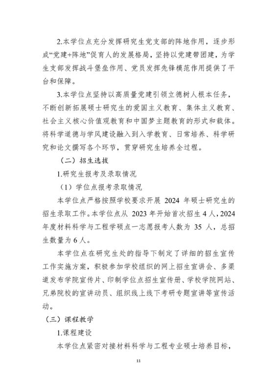 2024年材料科学与工程学术硕士学位点建设年度报告
