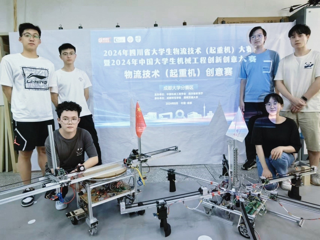 分赛区参赛。经过激烈的线上角逐和严格的线下评审,“五星齐发提新质”以小组第1名获一等奖,“两星共举促生产”(小组第6名)和“帕鲁2号”均获二等奖,且“五星齐发提新质”和“两星共举促生产”2件作品成功晋级2024年中国大学生机械工程创新创意物流技术(起重机)创意赛。