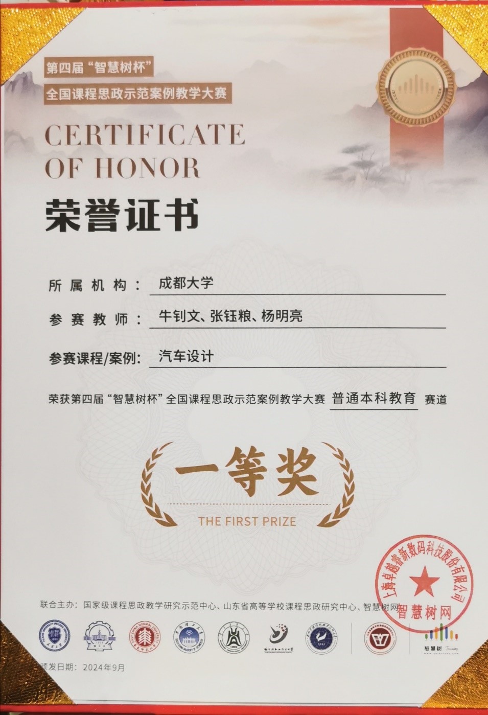 车辆工程系牛钊文教师团队的《汽车设计》课程从来自全国500余所高校上千教师团队课程思政案例中脱颖而出,荣获普通本科教育赛道国家级一等奖。