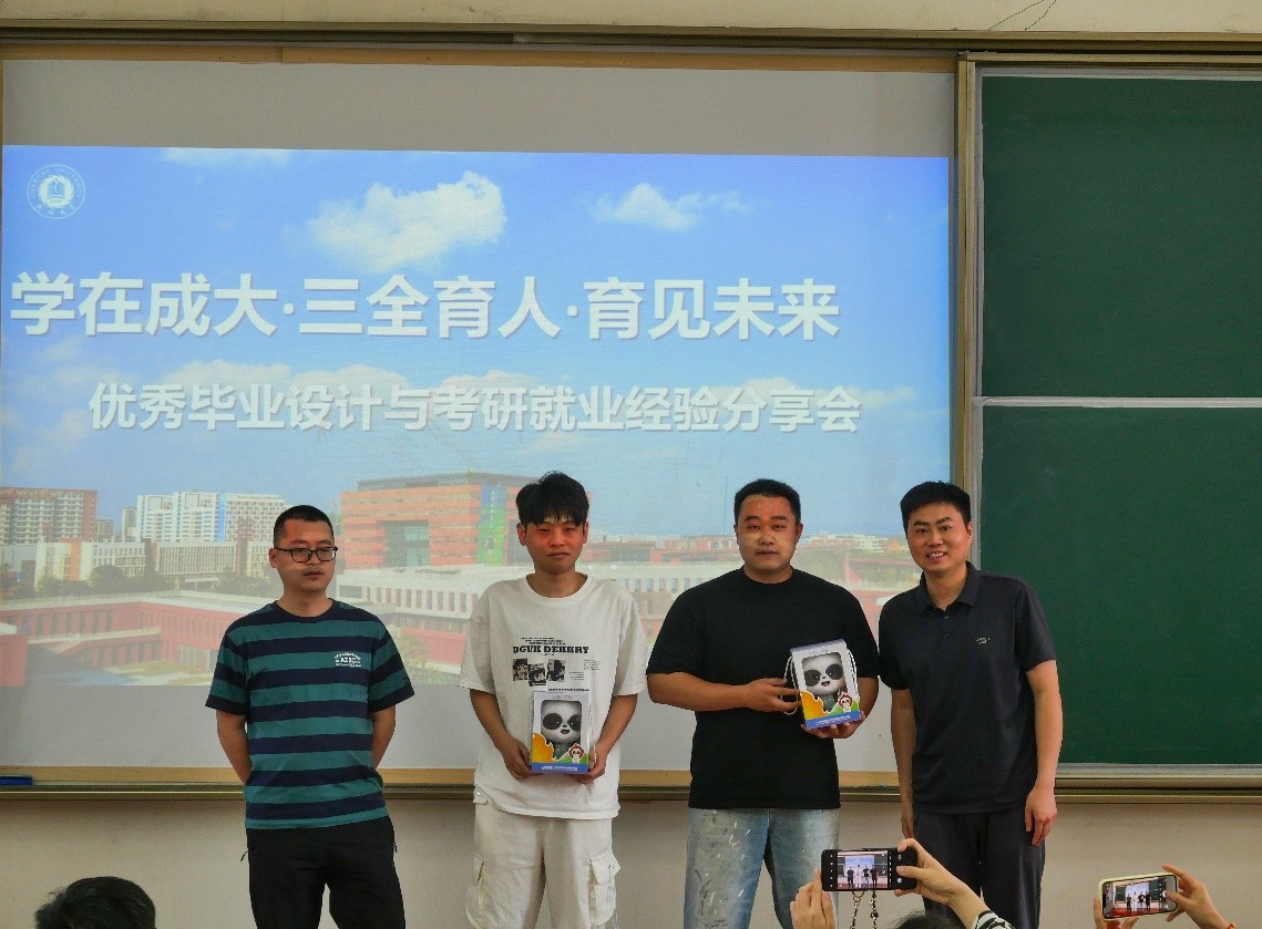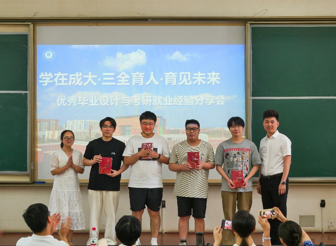 在优秀毕设代表汇报环节中,考研代表朱定一同学分享了院校选择和专业课复习策略,赵冰同学结合考试科目及经验分享了考研心得,在读研究生左裕琳同学结合自身经历分享了读研期间的体会。自由问答环节,同学们就考研过程中遇到的困惑积极提问,分享同学和老师进行了耐心解答,让在场同学受益匪浅。