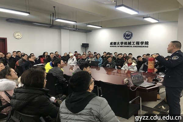 成都市利民消防宣传中心的何文平教官为全院师生开展2019年岁末消防安全培训。从防火、灭火、逃生、自救四个方面详细讲解了日常生产生活中的火灾隐患、带电火灾的扑救、各类灭火器材的使用、逃生等一系列消防安全知识,并现场演示了ABC类灭火器的使用方法。本次宣讲深入浅出、诙谐风趣、引用案例发人深省,参会师生进一步提升了消防意识。