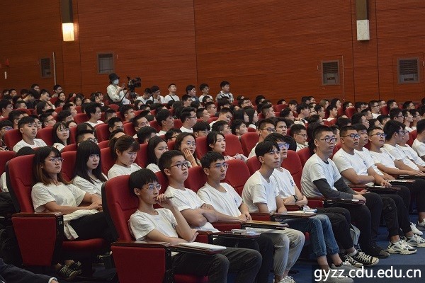 唐茂副院长介绍嘉宾后,以专业发展为主线介绍了学院的历史沿革;从组织结构、办学条件、学科设置、师资力量、学习环境等方面阐述了学院现状;从学科竞赛、国际合作和考研情况方面展示了学院特色。并寄语全体新生“休对故人思故国、且将新火试新茶,诗酒趁年华!”