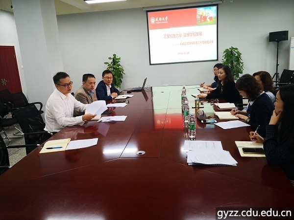 调研指导校友工作。调研座谈会在学院会议室举行。学院党委书记王仕平、副院长(主持工作)冯威、机电系主任和校友联络员等参加座谈。