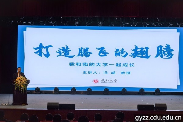 冯威教授以《打造腾飞的翅膀我和我的大学一起成长》为主题,分别从为什么上大学、上大学学什么和读大学怎样读几方面为新生启航教育,与学生畅谈大学新生活的憧憬与希望,引导同学们明确方向和目标、树立远大的人生理想。